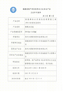 PVC-UH衛(wèi)生許可批件(2025年2月21日)